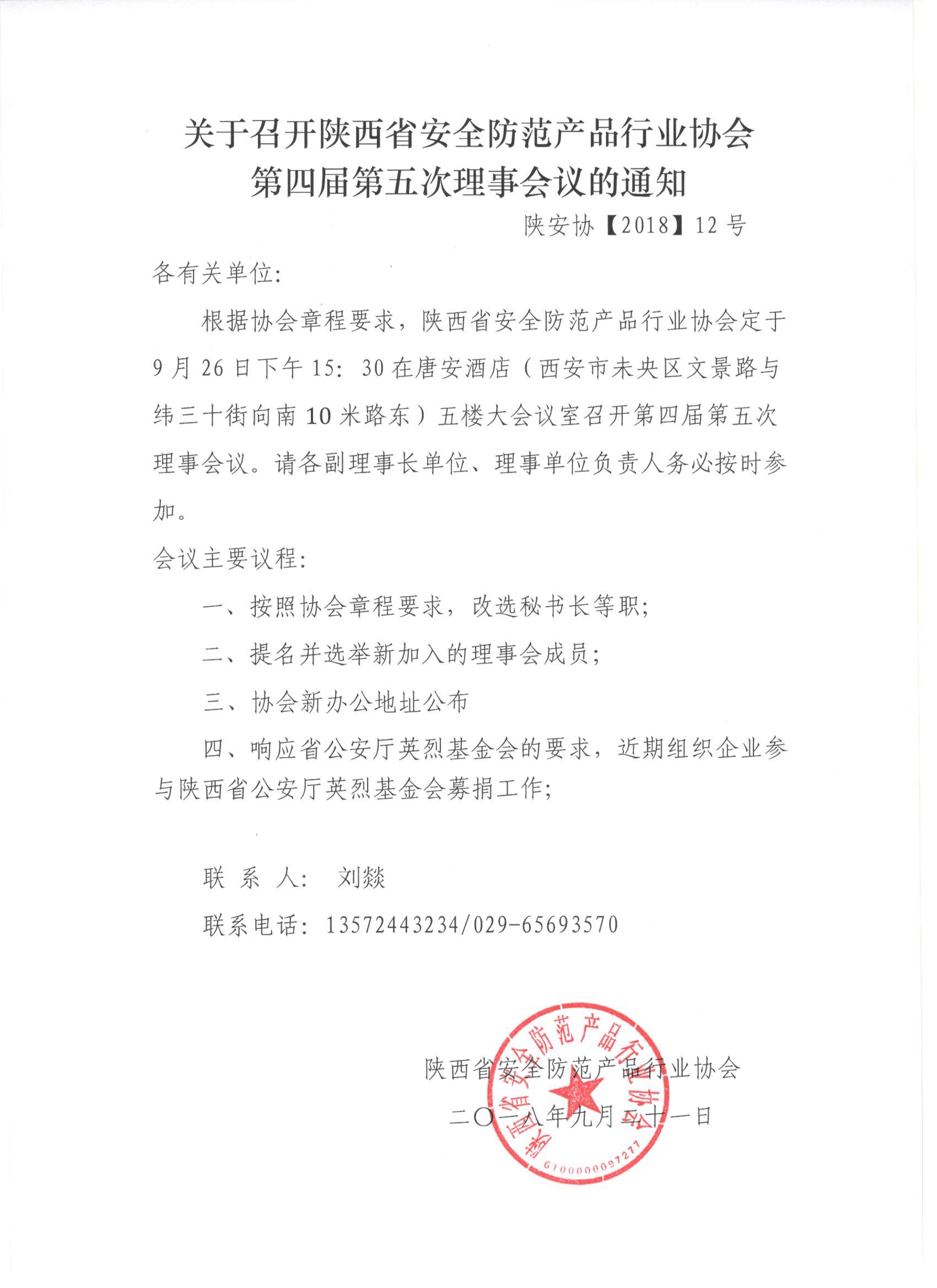【会议通知】关于召开陕西省安全防范产品行业协会第四届第五次理事会议的通知