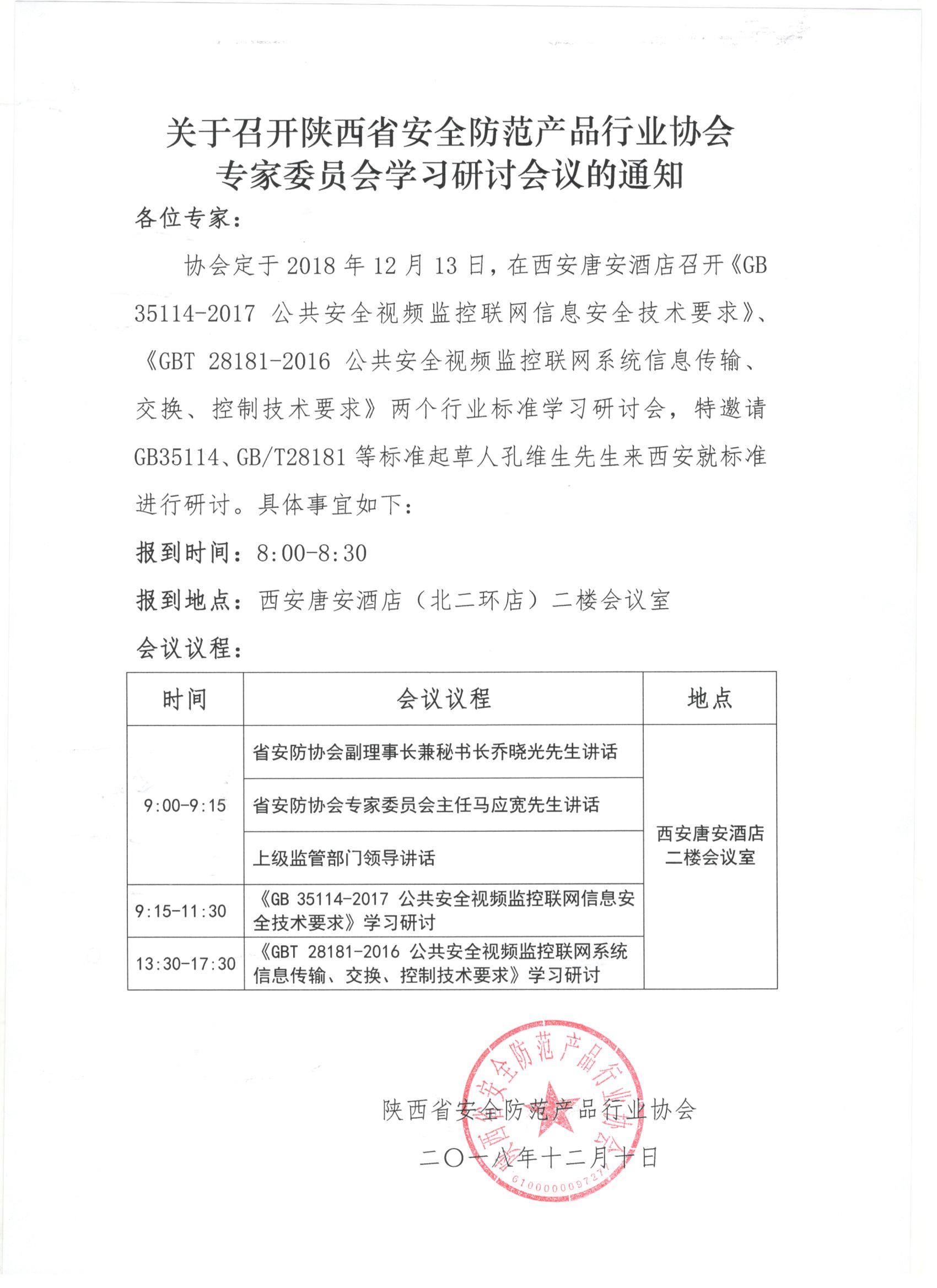 关于召开陕西省安全防范产品行业协会专家委员会学习研讨会议的通知